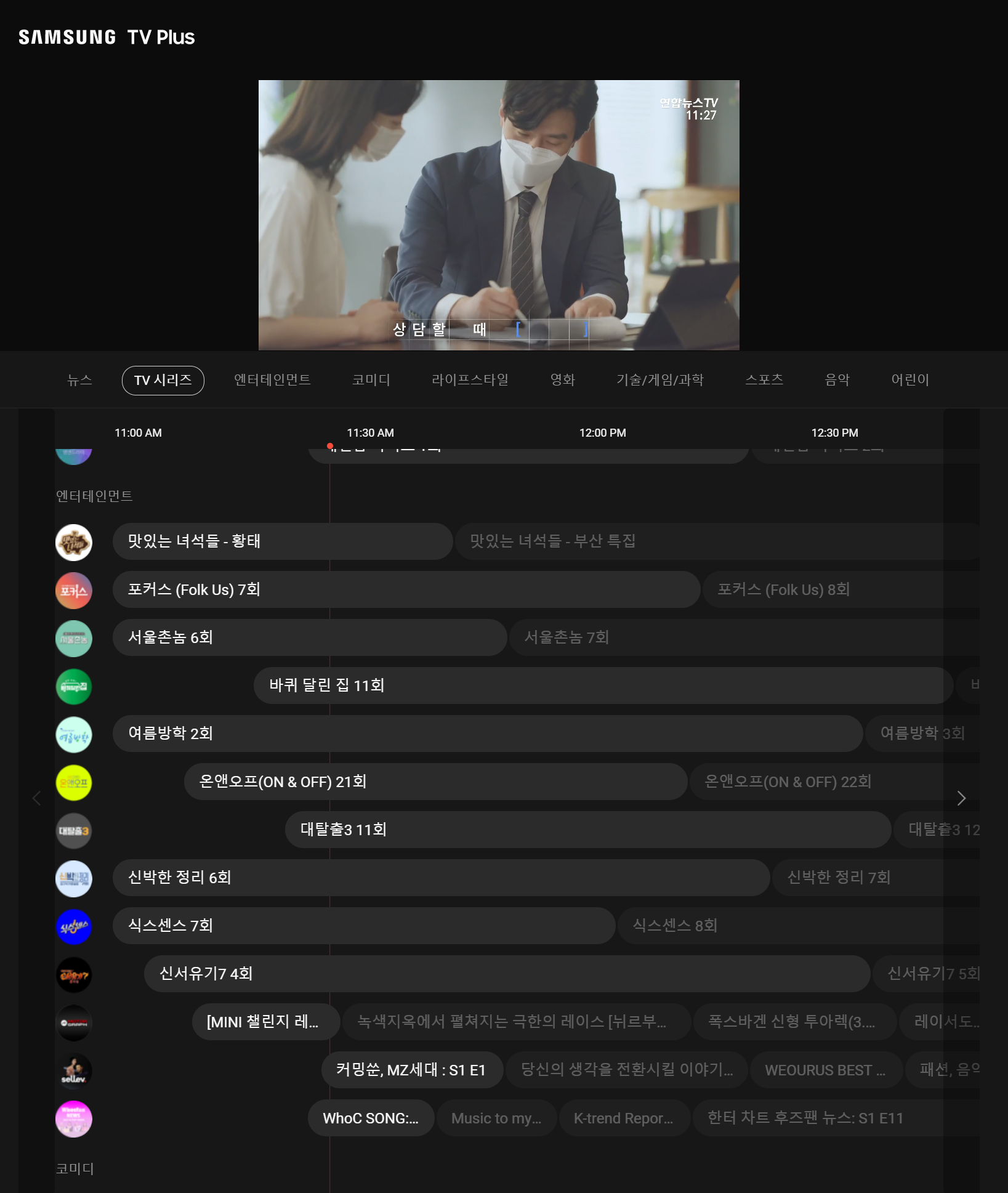 TV라고 하더라도 일반 TV와 같은 개념은 아니며, 채널마다 한 개의 콘텐츠 프로그램을 연속 방영하는 방식입니다. 물론 실시간 채널도 있기는 한데, 현재는 연합뉴스만 실시간 방송으로 진행되는 것 같습니다.