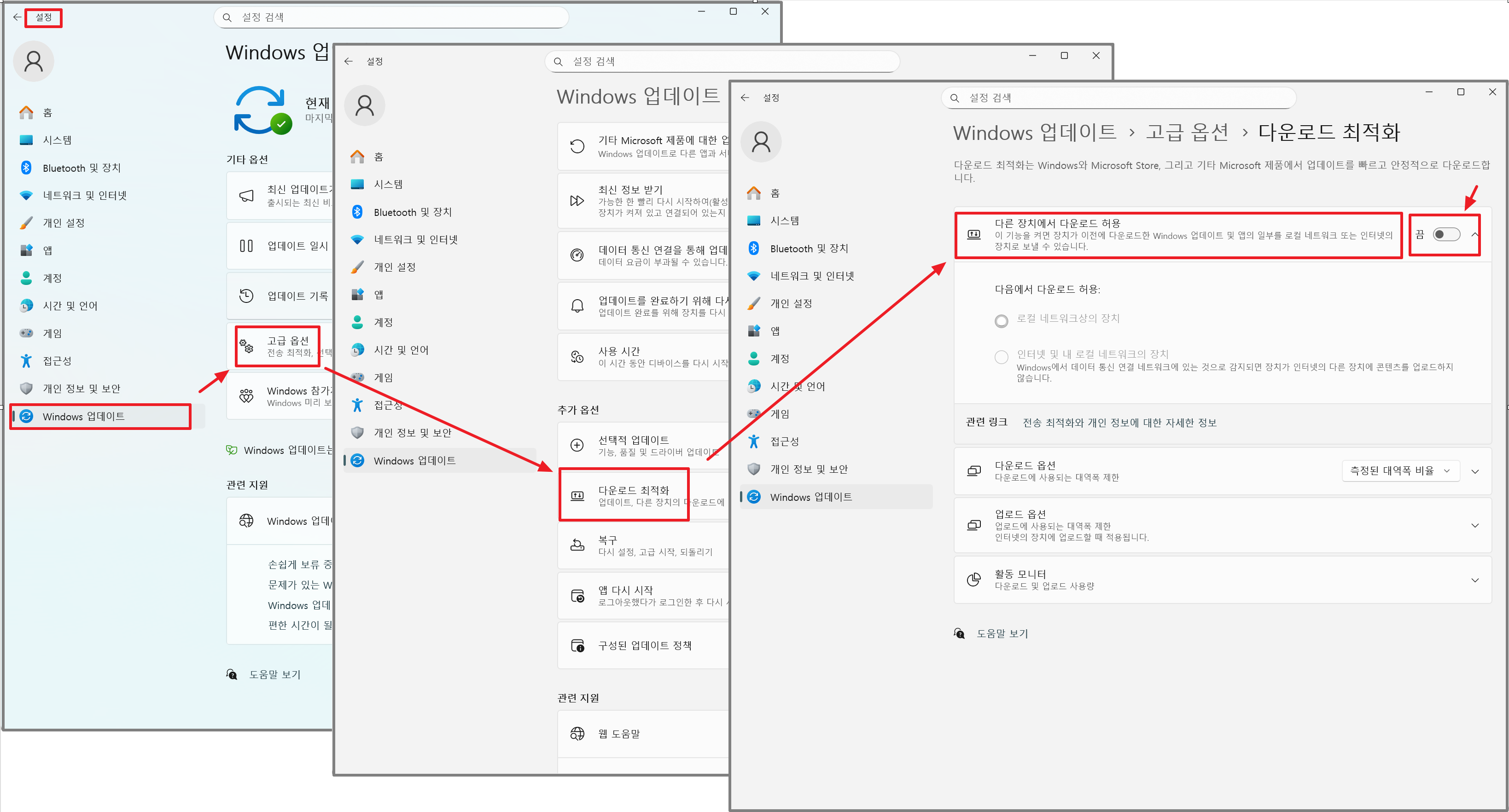 ✔️ Windows 11에서는 다운로드 최적화라는 이름으로 제공됩니다.