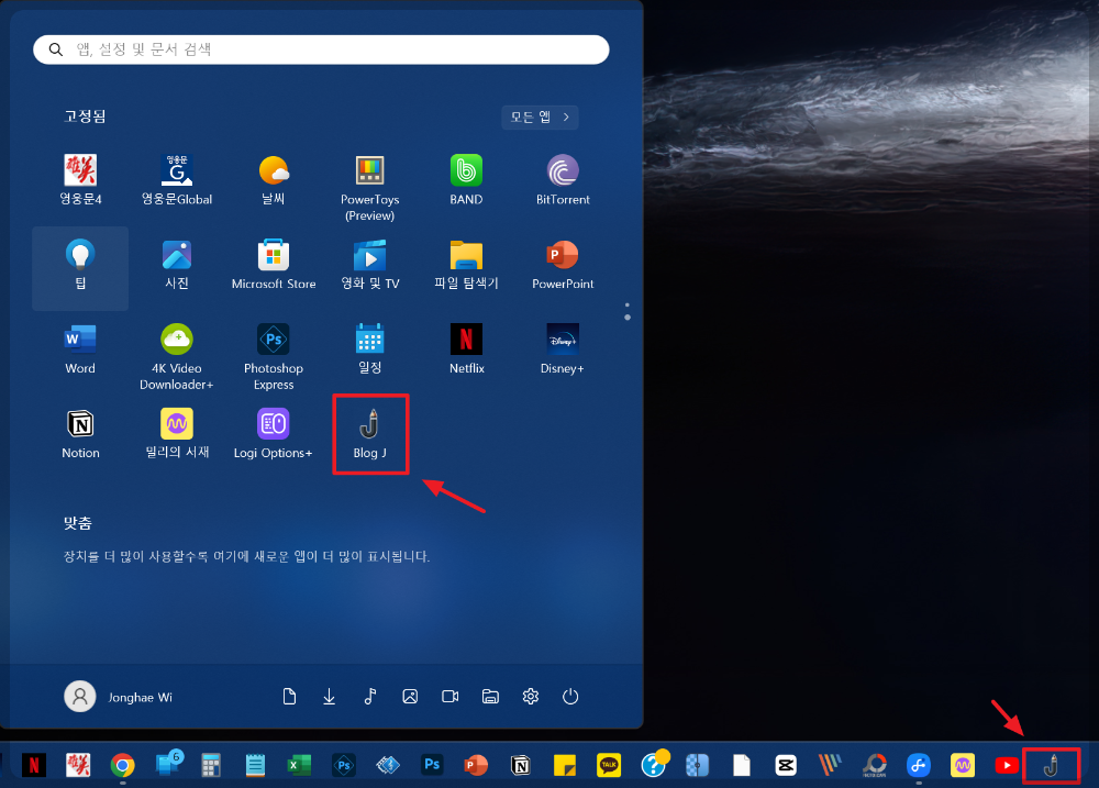 ▼ 시작화면과 작업표시줄에 고정하였습니다.