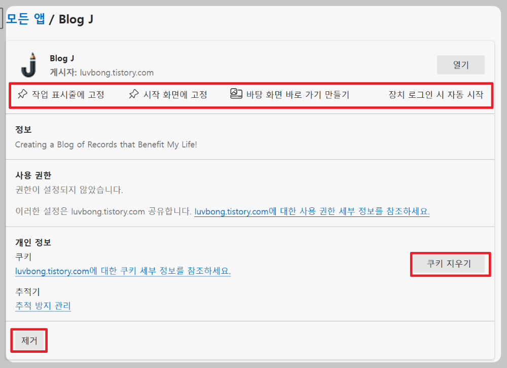 앱으로 설치하면 시작화면이나 작업표시줄 등에 설치하여 편하게 사용할 수 있습니다.