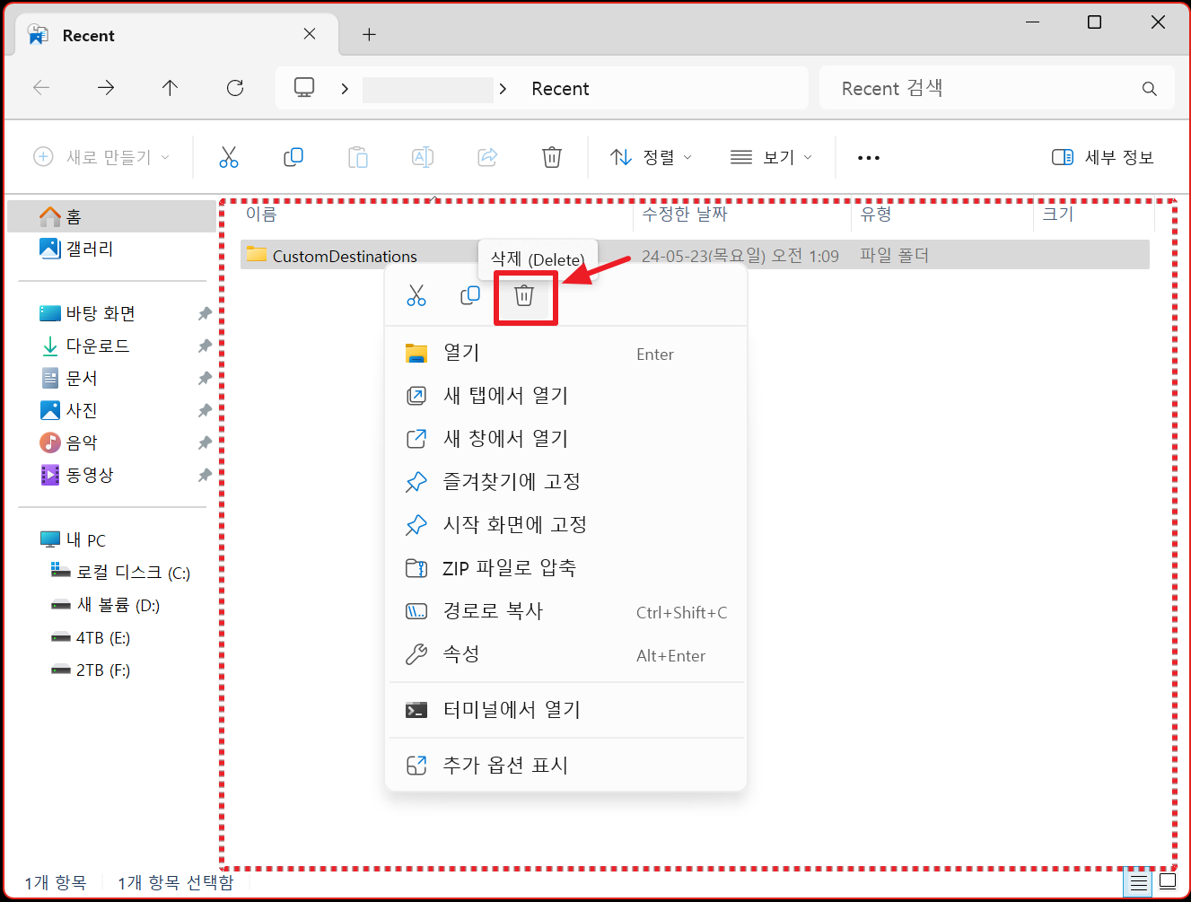 Recent 폴더 비우기