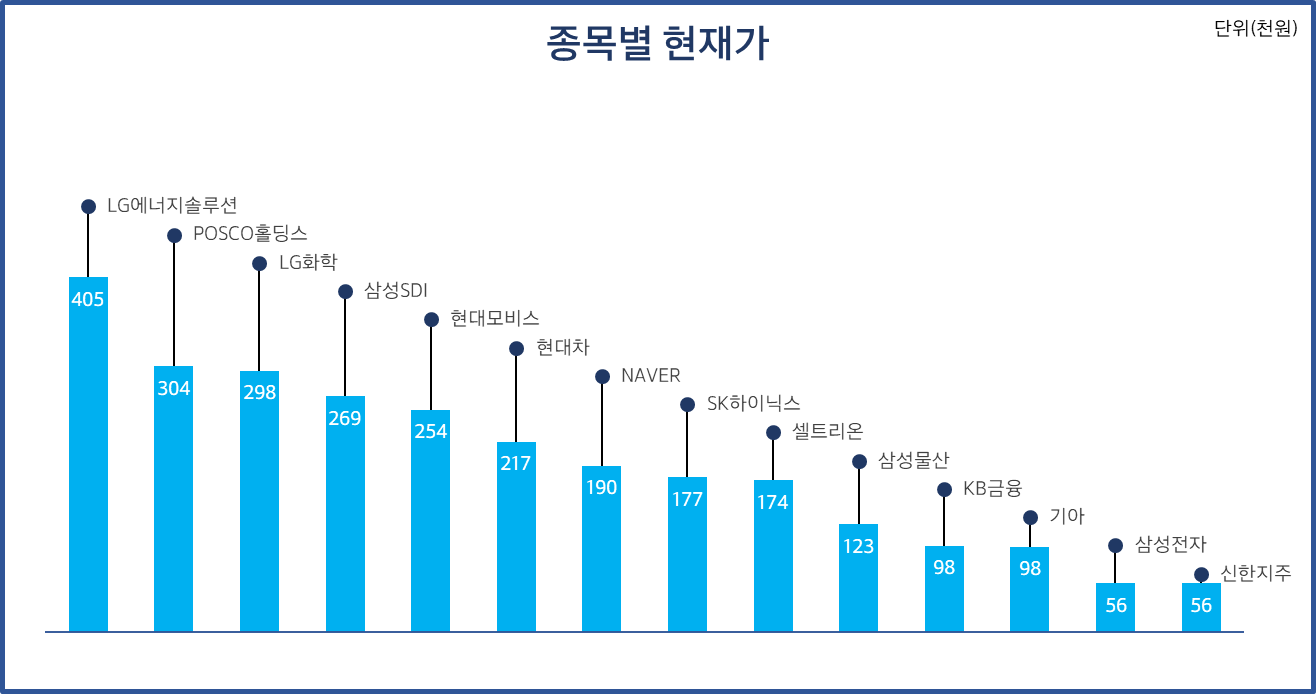 * 이 차트는 혼합 차트를 이용한 방법으로 데이터값은 막대 차트 부분에 나타나게 하고, 항목이 나타날 부분은 선차트로 나타나게 하니다.