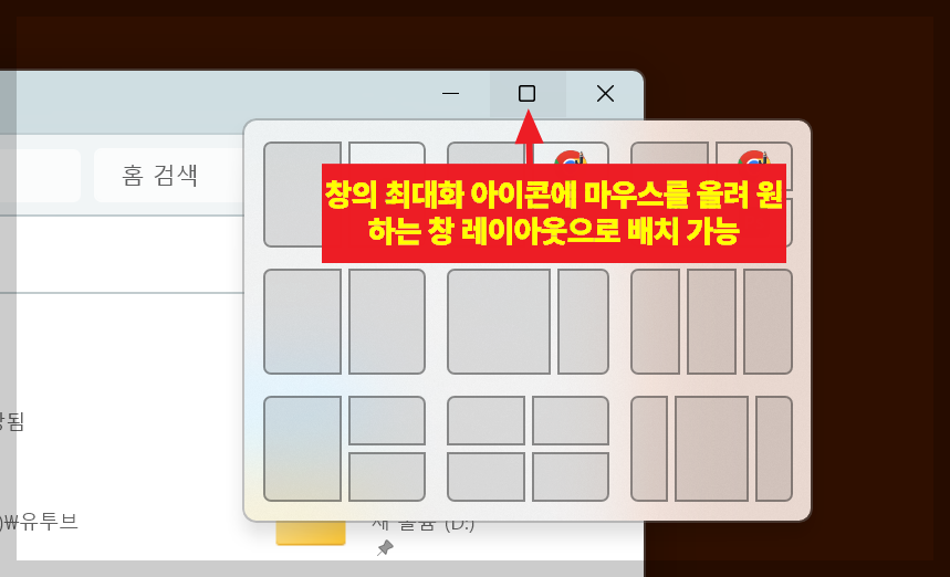 Windows 11에는 단축키와 스냅 레이아웃(Snap Layout) 기능을 활용해