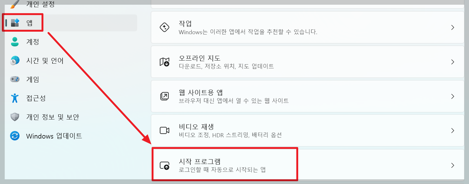 2️⃣ 설정에서 시작 프로그램 관리하기 (가장 쉬운 방법)