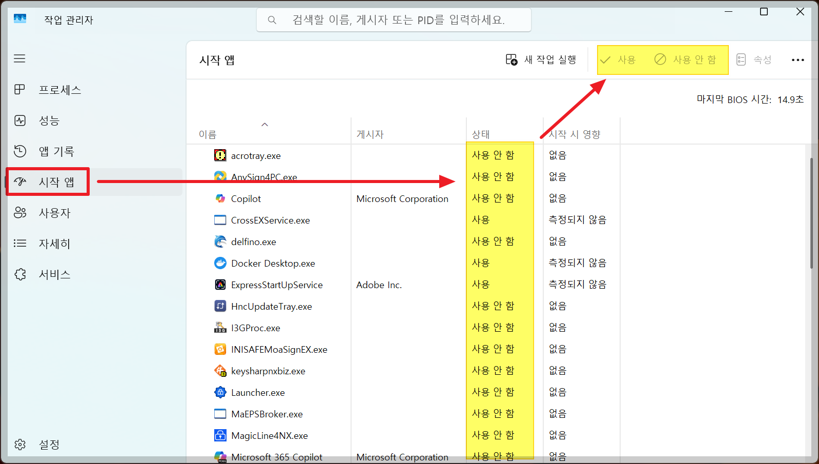 - Windows 11 부팅이 느리다면 가장 먼저 시작 프로그램 확인
