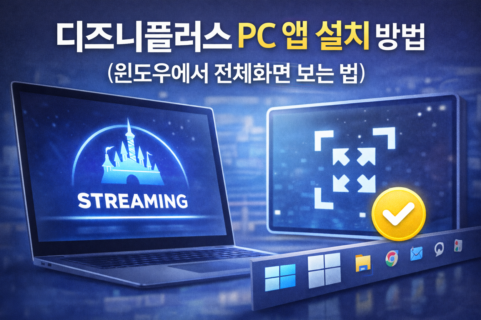 디즈니플러스 PC 앱 설치 방법 (윈도우에서 전체화면 보는 법)