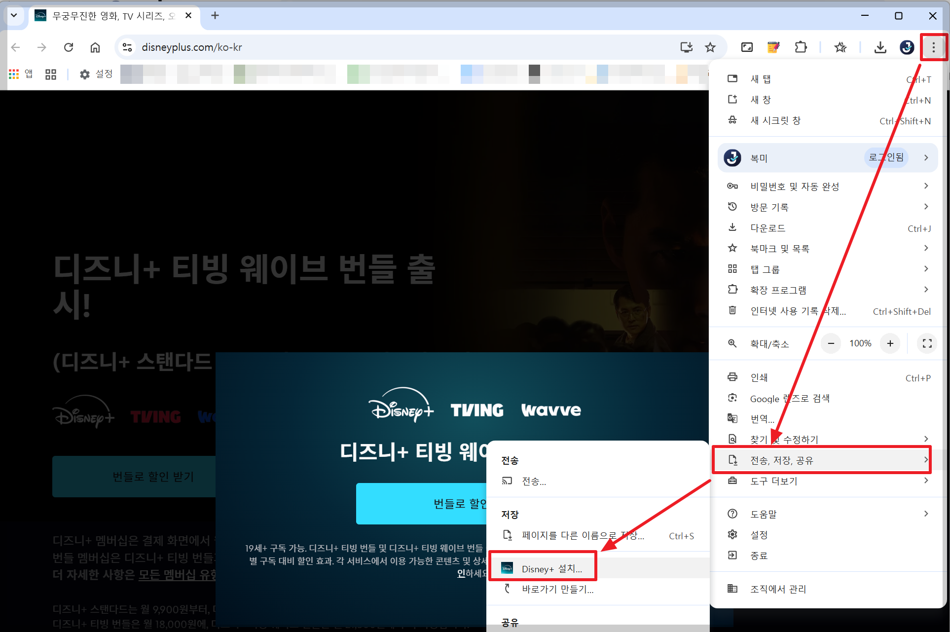 디즈니플러스 PC 앱 설치 방법 (Chrome 기준 · 최신)