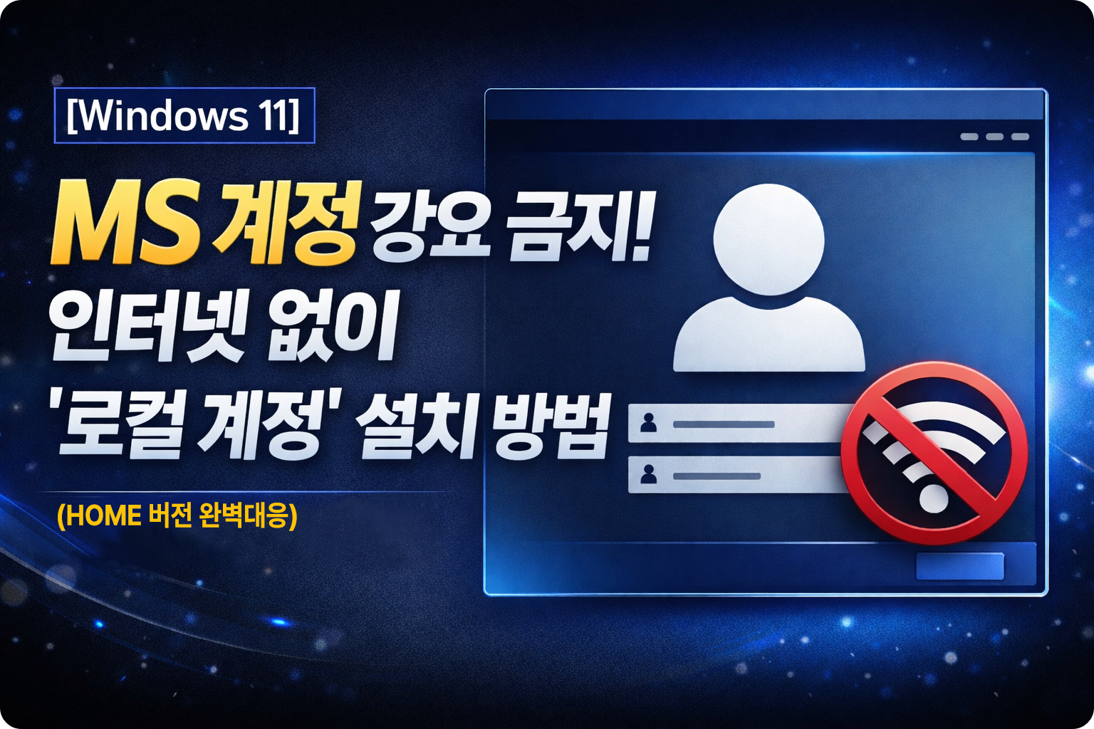 "마이크로소프트(MS) 계정 로그인" 단계를 건너뛰고, 예전처럼 로컬 계정(오프라인 계정)으로 깔끔하게 설치하는 방법을 정리해 드립니다.