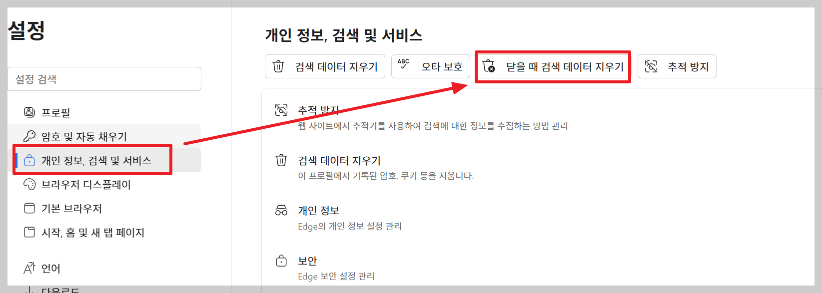 - 단계 1: 닫을 때 검색 데이터 지우기 설정 확인